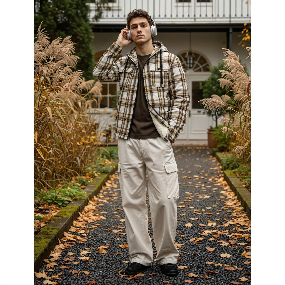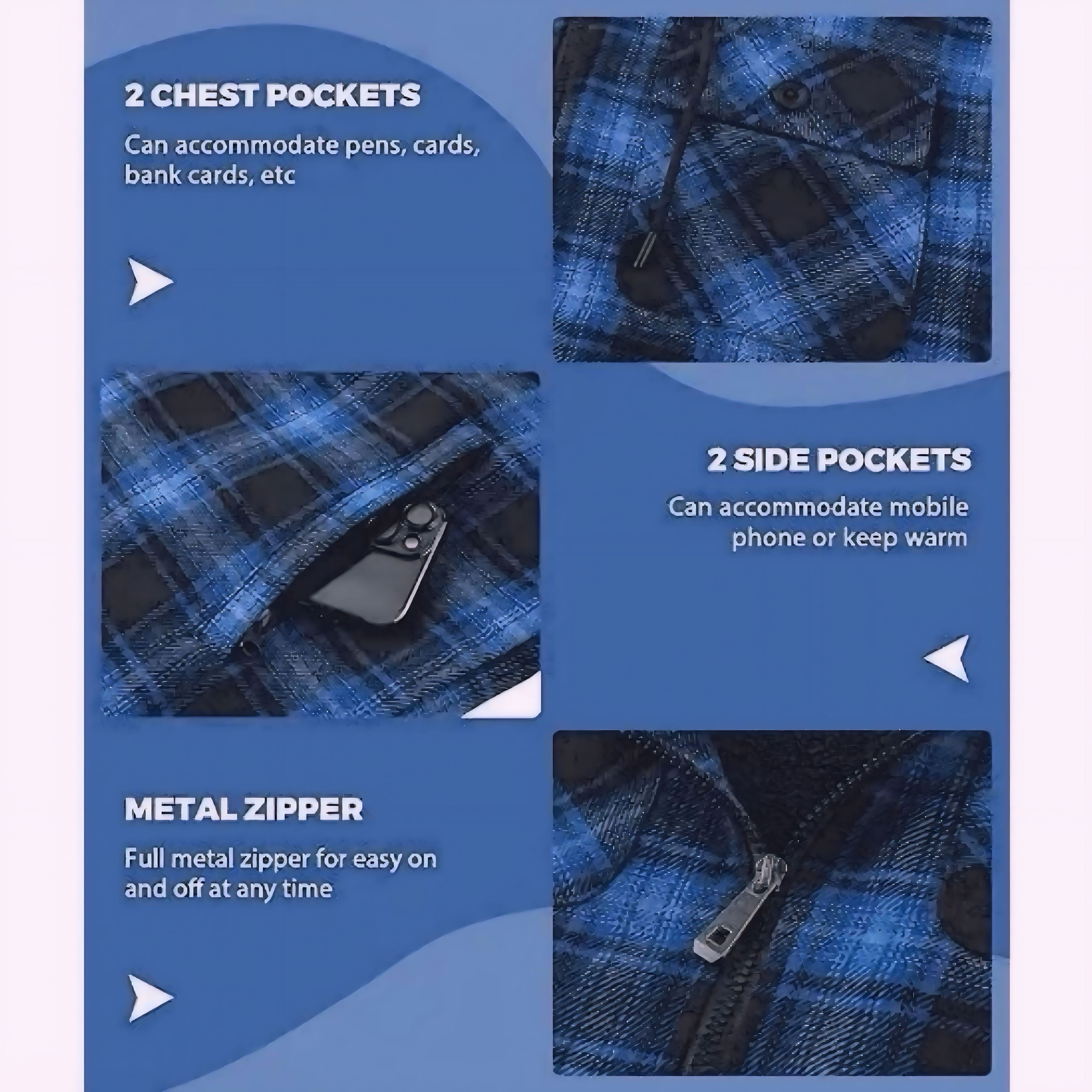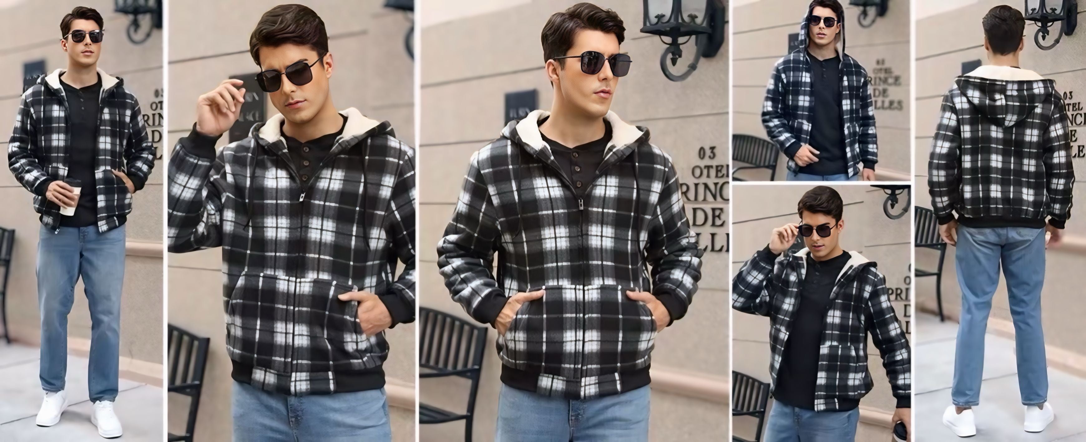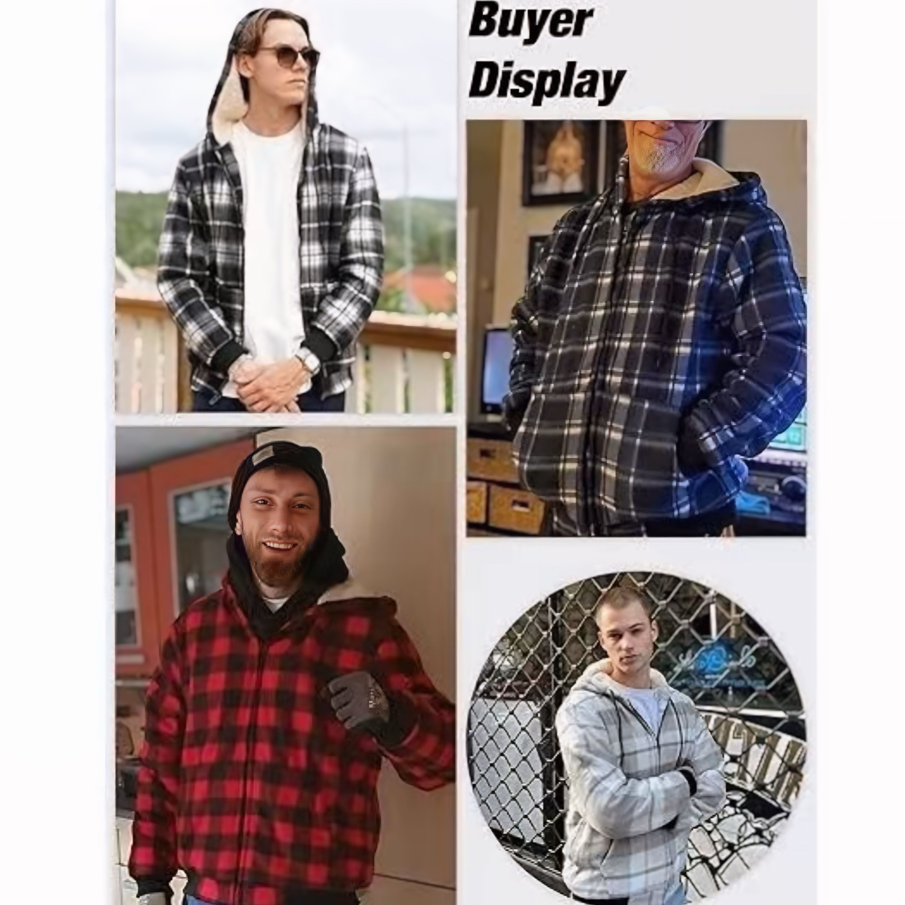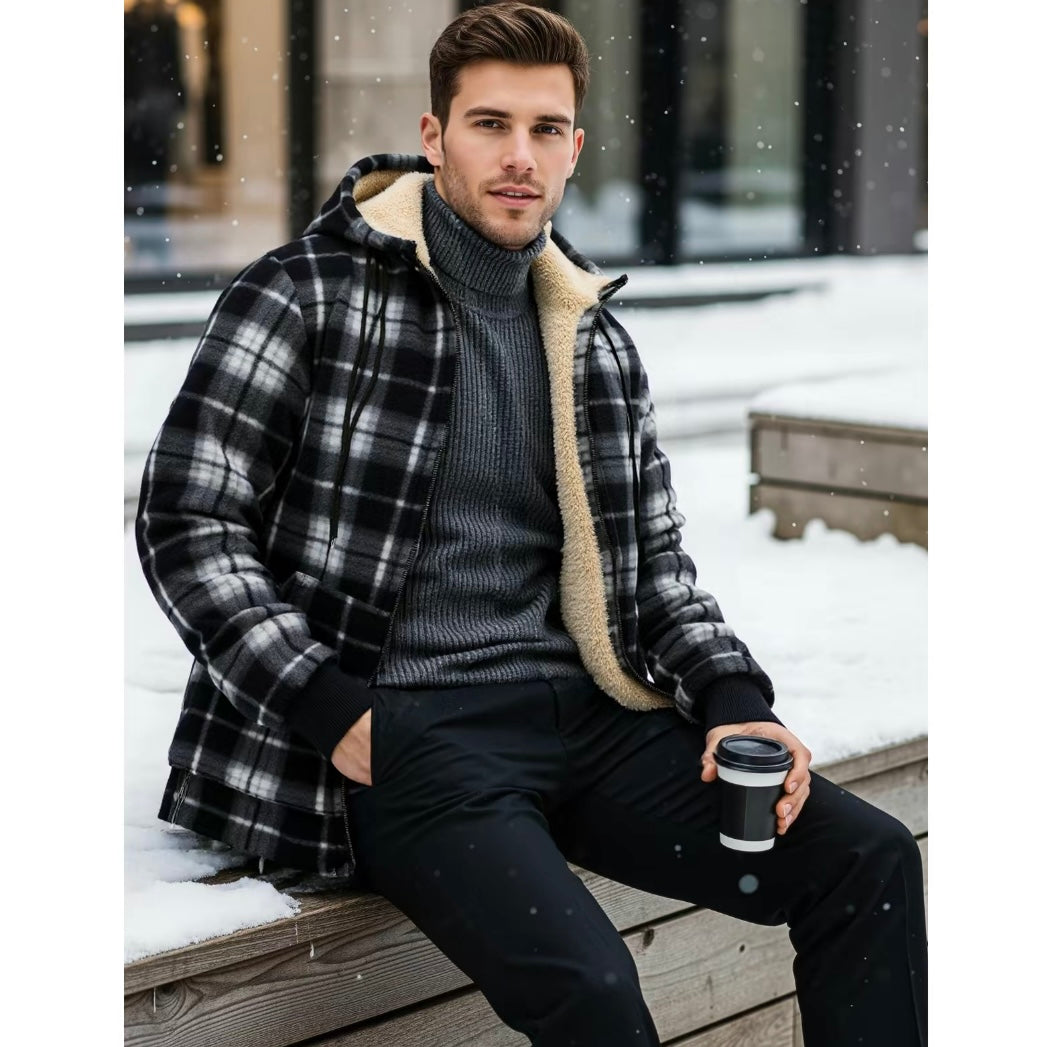 Men's Thick Plaid Fleece Lined Hooded Coat